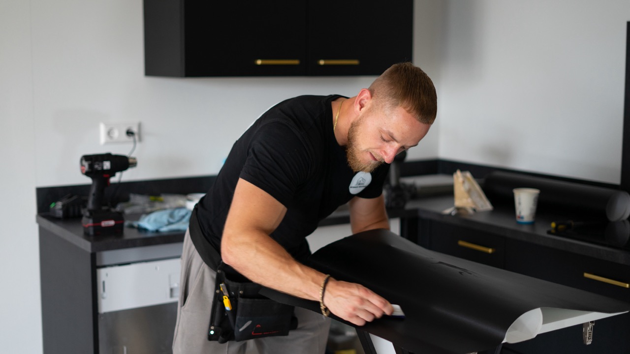 Specialist van Interieur Wrapping meet keuken op voor wrapping